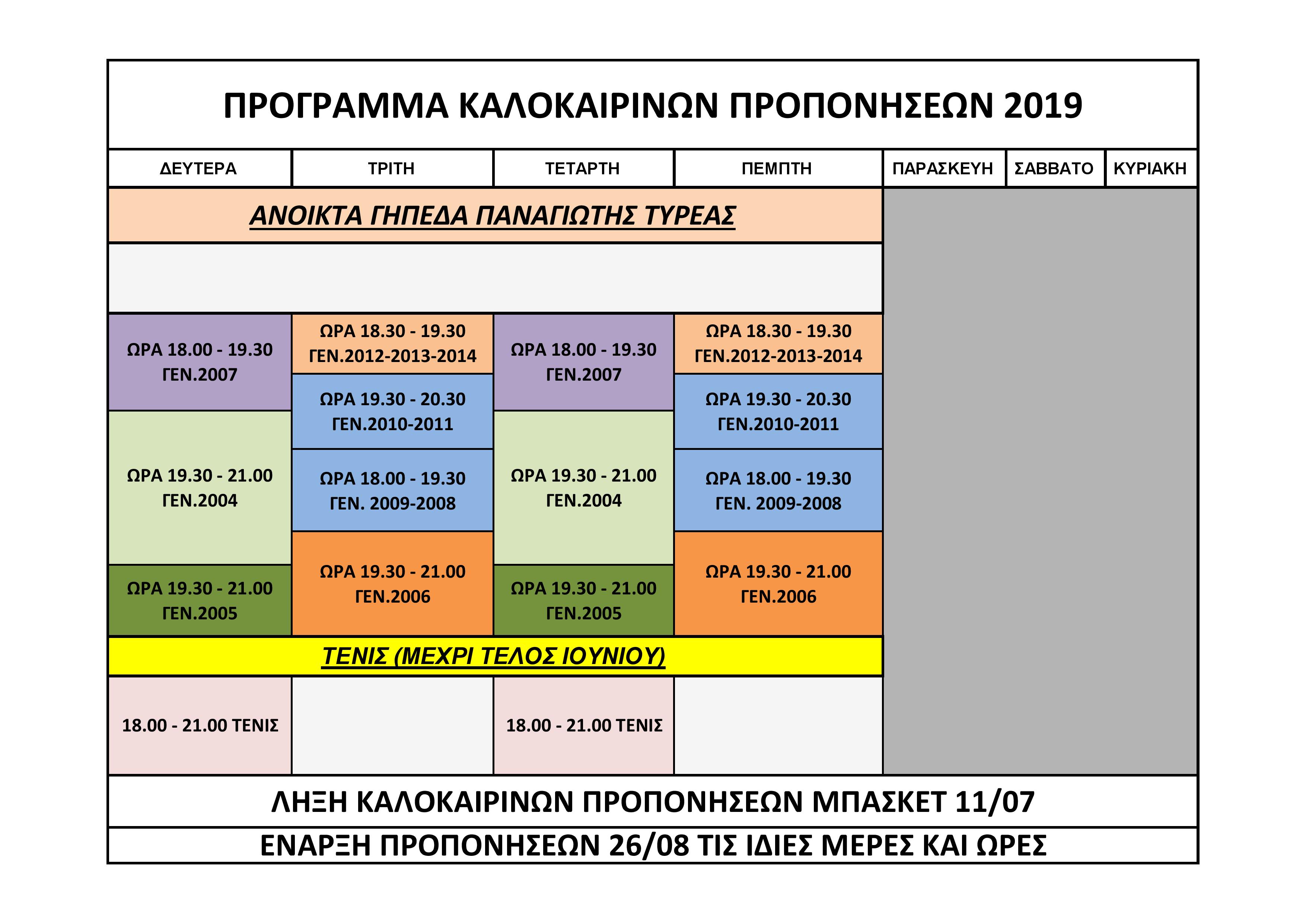 ΚΑΛΟΚΑΙΡΙΝΟ ΠΡΟΓΡΑΜΜΑ ΠΡΟΠΟΝΗΣΕΩΝ 2019