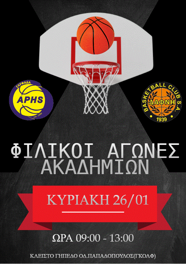 Την Κυριακή 26/01 ο σύλλογός μας θα φιλοξενήσει την ακαδημία του ΑΟ Δάφνης για φιλικούς αγώνες στο κλειστό. Οι αθλητές μας θα πρέπει να έχουν μαζί τους την προπονητική εμφάνιση.